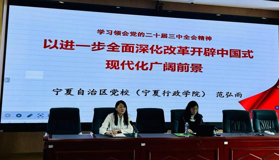 12月4日下午,350vip8888新葡的京集团登录入口邀请中共宁夏回族自治区党校政治部的范弘雨博士为学院教职工作“学习领会党的二十届三中全会精神”专题辅导。学院全体教职工参加本次讲座,学院党总支书记朱海燕主持讲座。