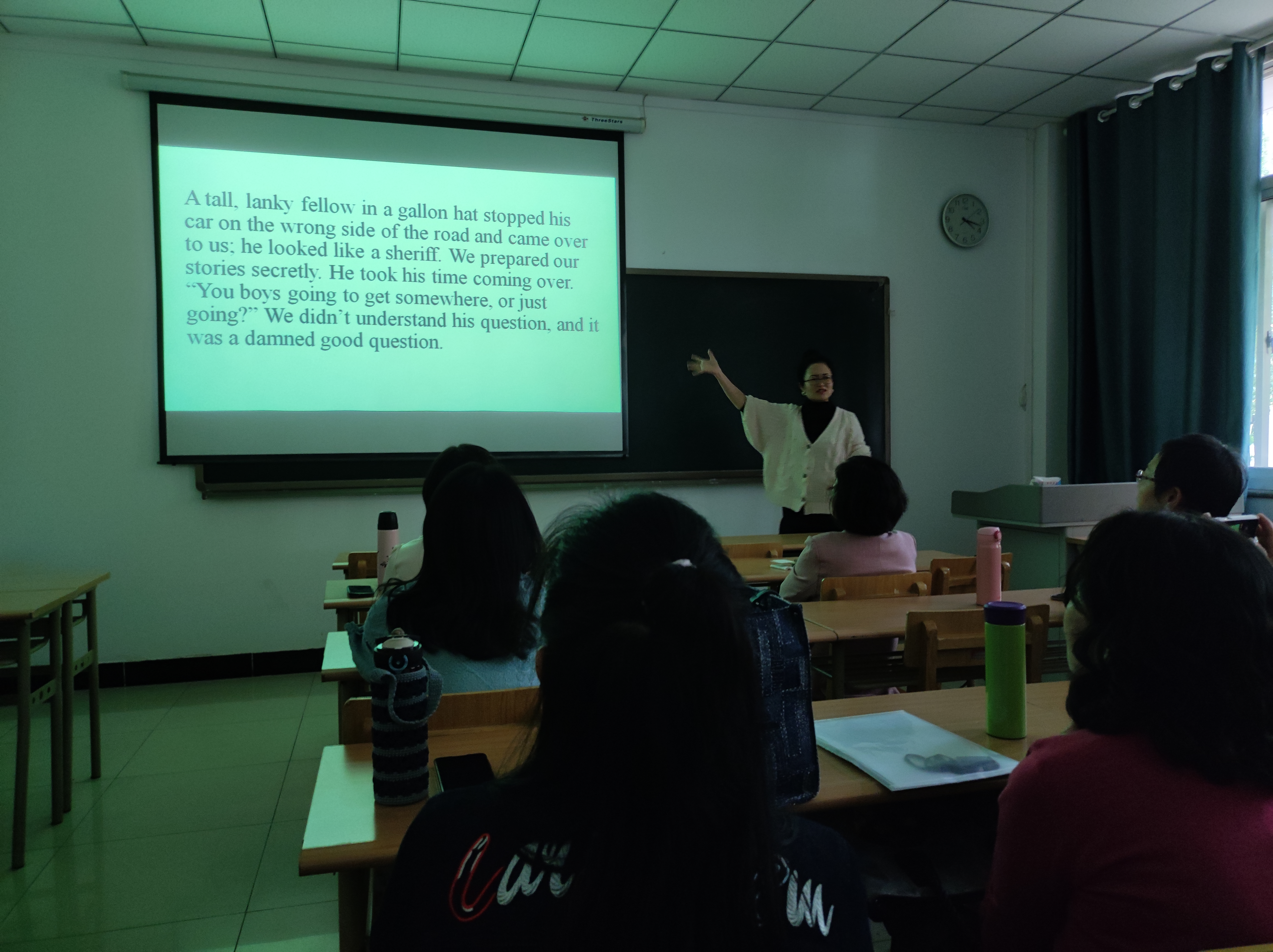 会上,胡又铭老师以自己在德国读博期间的亲身经历,首先向大家介绍了德国大学课堂的特点、教授的教学风格、学生自主学习能力的培养等方面的情况。之后,胡老师通过具体的文本实例,给大家详细阐述了为了学好弄懂文学课,学生需要在课前做什么样的准备、如何进行独立探索以获取与课本相关的背景知识等问题。通过具体的案例分析,胡老师指出了中西方学习者的思维习惯和差异,提出:为了使学生更好地了解文学作品的内涵以及字里行间的寓意,我们的老师需要在挖掘学生的潜力方面下工夫,引导他们发挥自己的主观能动性,进行探究式学习、自主式学习,而不是一味对他们进行知识的生硬灌输。胡老师的讲座生动、有趣,引起了在座老师的极大兴趣。大家纷纷围绕着自己的教学体会和感悟进行了分享和探讨。