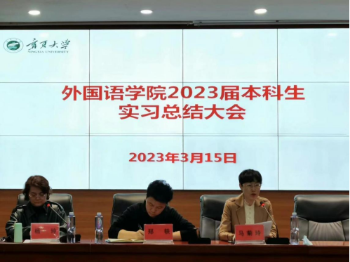 2023年3月15日下午2:00,我院召开了2023届本科生实习总结大会,350vip8888新葡的京集团,党委副书记郑轶老师、副院长马菊玲老师、全体实习指导老师及2023届毕业生参加了此次大会。英语系主任杨玲老师主持会议。
