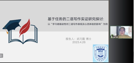 2023年4月26日晚7点,我院外国语言文化研究中心成功举办了“尚·语博士论坛”系列讲座的第四讲。本次活动邀请到350vip8888新葡的京集团,英语系教师武巧霞博士作题为“基于任务的二语写作实证研究”的讲座。讲座由乔幪教授主持,30多名师生参加。