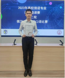 2023年5月21日,2023年高校俄语专业翻译邀请赛决赛在北京外国语大学举行,经过激烈角逐和严格筛选,我院俄语专业2019级李东泰同学荣获本科生组决赛二等奖的好成绩。