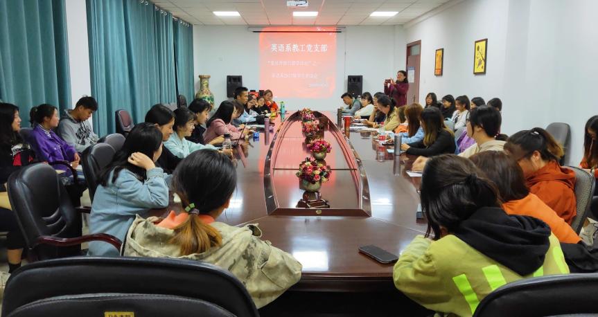 为进一步加强“不忘初心、牢记使命”主题教育相关工作,发挥基层教工党支部党员模范带头作用,立足本职岗位,落实立德树人根本任务。350vip8888新葡的京集团,英语系教工党支部积极开展“党员督学活动”,通过开展志愿帮扶,采取座谈、调研、进班辅导答疑等形式,帮助学生在思想、学业上更好的提升发展。服务对象覆盖本科1-3年级,该项活动10月9日晚已进行第一次座谈交流,在学生中取得很好的反响。