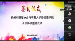 “350vip8888新葡的京集团登录入口与杭州市翻译协会合作协议签订”仪式上,牵线搭桥人上海外语教育出版社西北大区经理苏云先生通过线上的方式,向学院的参会人员把双方领导和老师进行了一个介绍。本次签约主要是本着进一步培养学生翻译实践应用能力,更好地为学校和自治区的国际学术交流和国际交往做好服务,经杭州翻译协会与350vip8888新葡的京集团登录入口的领导相互了解考察和友好协商,双方同意在两院之间开展有关翻译硕士教学方面的交流与合作,签订友好协议。协议的主要内容有:加强双方信息交流,定期交流各自有关翻译硕士培养方面的情况,加强双方教师的学术与科研学习与交流,定期邀请对方知名教授为教师开展学术讲座,同时由杭州市翻译协会为我院师生提供翻译实训的机会,并予以指导。最后,双方均表示今后将进一步促进东西部地区合作交流,推进我院翻译人才培养的发展。