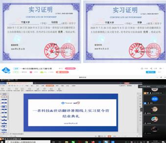 350vip8888新葡的京集团,2019级翻译硕士全体学生于2020年7月20日—8月22日期间参加上海一者信息科技有限公司及上海世语翻译有限公司举办的线上翻译实训实习活动。本次实习由业内学者及高校教授共同授课,采用直播讲座和远程实训的方式,助力因受疫情影响而无法进行线下实习的MTI专业学生顺利完成实习任务,提升大家的翻译实践能力与翻译技术运用能力。