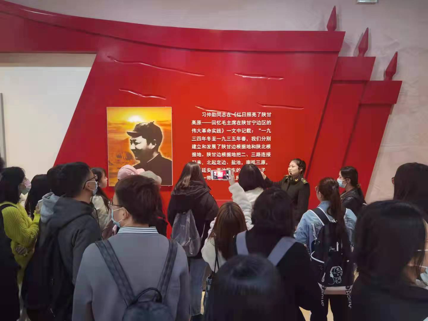 团队一行首先到达盐池县革命纪念馆,在讲解员的带领下,大家了解了盐池县在陕甘宁革命老区中发挥的重要作用,也对馆内标志牌、展品牌进行拍摄,共同探讨标识语的英文翻译版本。大家在聆听讲解的同时,也注意观察标示牌上不同历史事件的文字介绍和英文翻译,发现了其中许多英文翻译仍存在需要改进的地方,这次活动使得大家在革命精神的熏陶中加深了对生活实际语境中的翻译的认识。
