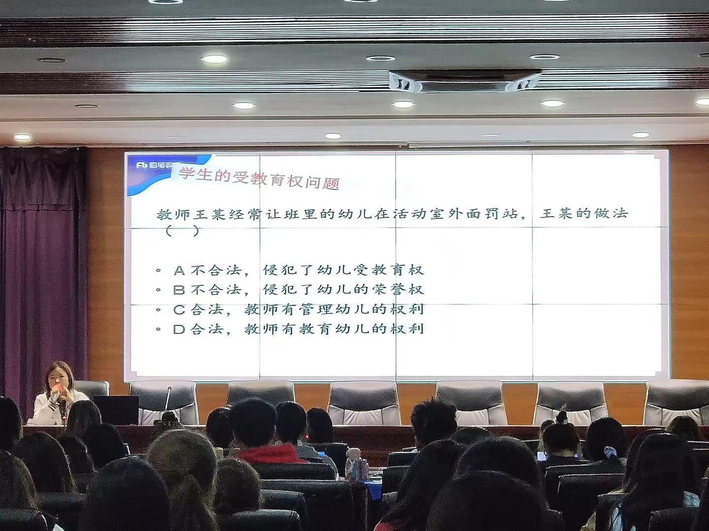 紧接着,马老师从教资的面试、笔试等方面向同学们分享满满干货。她引入教资考试的部分真题与在场的同学进行互动,同学积极踊跃地举手参加,充分展现了同学们的学习热情。马老师向答题正确的同学发放小礼品,并对同学表达了祝福,愿同学在将来的教师资格证考试中取得好的成绩。