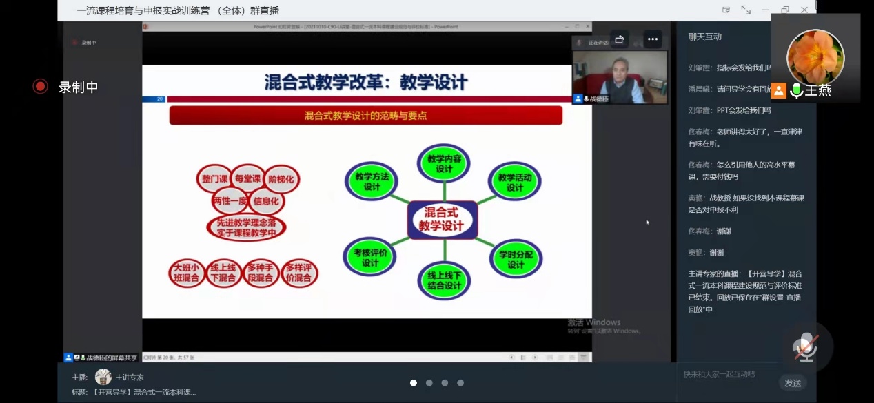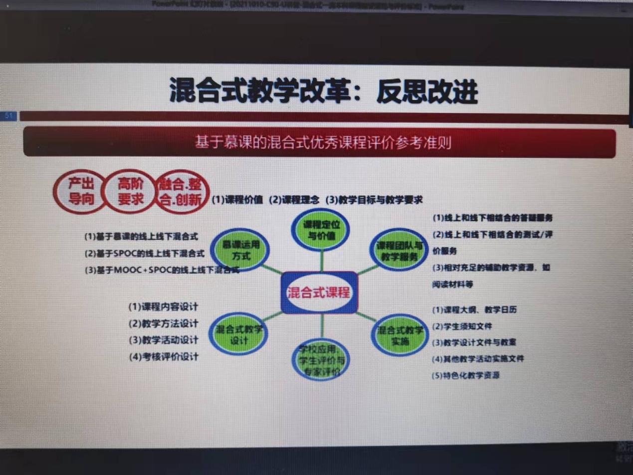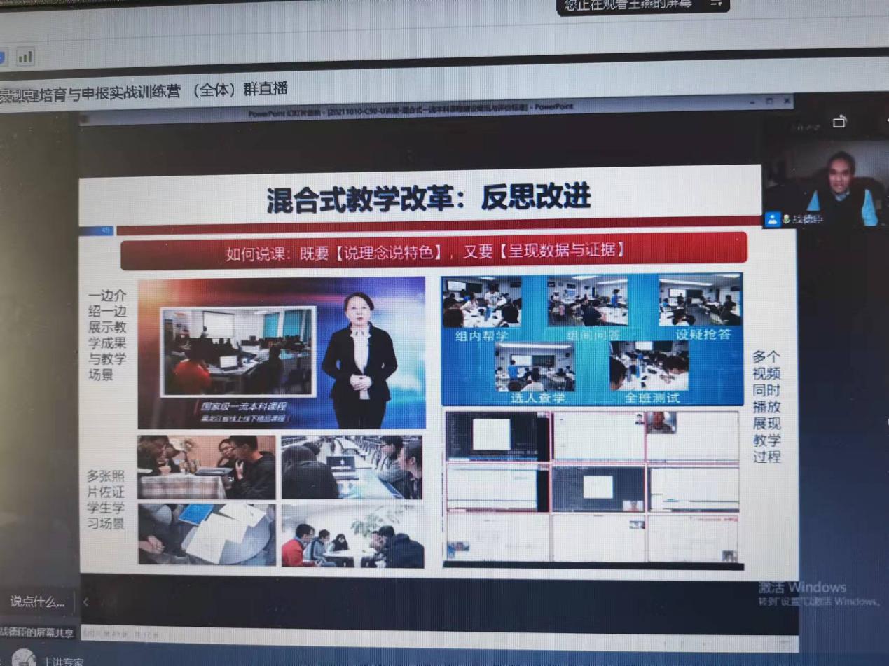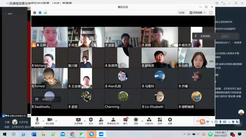 350vip8888新葡的京集团,英语系一流基层教学组织“语言与思辨教研室”于2021年10月27日下午2点,开展了线上教学活动,共同观看讲座“混合式一流本科课程建设规范及评价标准”,主讲人为哈尔滨工业大学教授,博士生导师战德臣。英语系语言与思辨教研室(一年级组)和语言与思辨教研室(二年级组)全体教师共同聆听本次线上讲座。