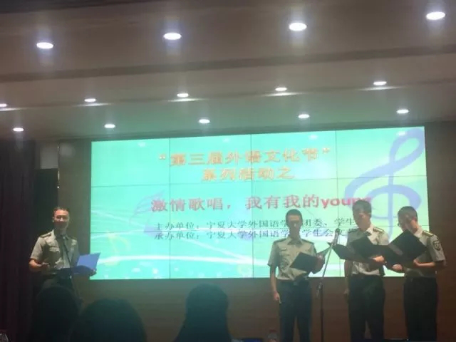 2018年5月10日下午6:30,在350vip8888新葡的京集团,403报告厅举办“第三届外语文化节”系列活动之“想唱就唱,我有我的young”外文歌曲大赛决赛。