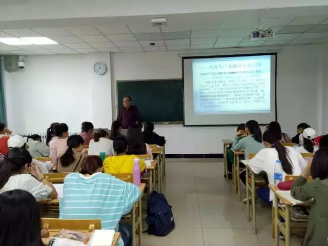 讲座伊始,李老师向同学们讲述了共产党与近代中国的紧密联系。李老师从历史的角度开讲,介绍了抗日烽火、中共七大、新中国成立等大事件,以史为鉴,告诉了同学们,没有共产党的领导就没有新中国。