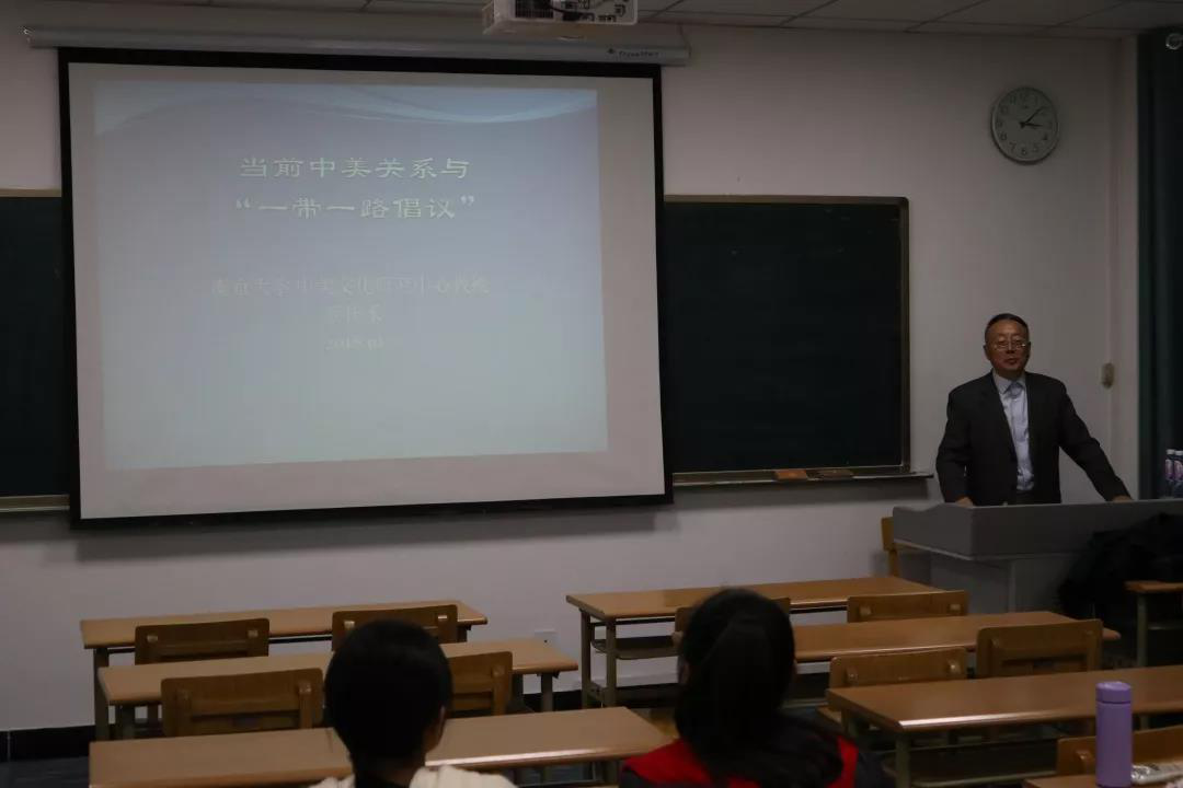 2018年10月24日,350vip8888新葡的京集团,在致远楼314教室举办了庆祝建校60周年“学术校庆”系列讲座之“中美大国关系的构建与一带一路倡议”专题讲座。主讲人为南京大学博士研究生导师、中美文化研究中心副主任蔡佳禾教授.