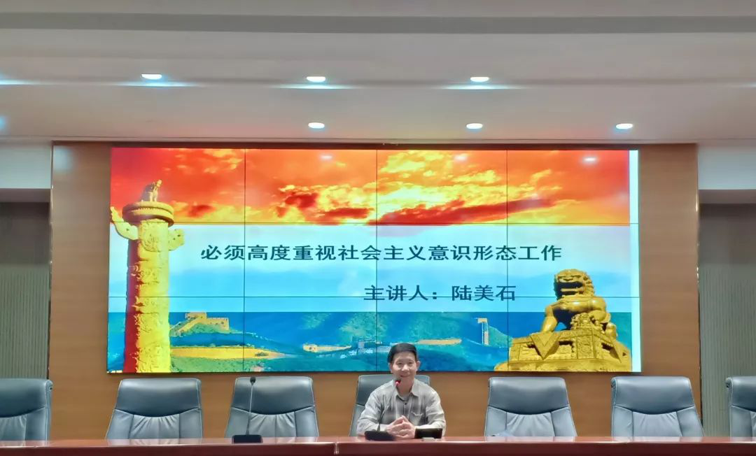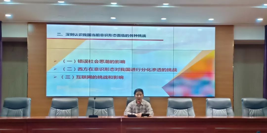 讲座伊始,陆美石老师引用习近平总书记的重要讲话引出何为社会主义意识形态,并从“社会主义意识形态及其重要性”、“深刻认识当前我国意识形态面临的各种挑战”、“党中央历来重视社会主义意识形态工作”等方面展开深入详细的讲解。