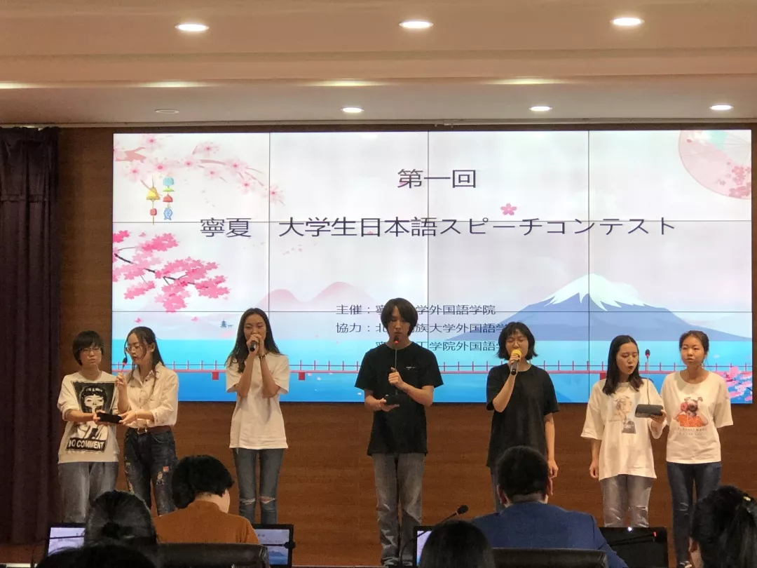 来自宁夏大学、北方民族大学、宁夏理工学院三所高校日语专业的共十二名同学参加了此次比赛。350vip8888新葡的京集团登录入口副学院长赵晓佳老师出席了比赛。北方民族大学350vip8888新葡的京集团,日语专业门娟老师、北方民族大学350vip8888新葡的京集团,日语专业长浜千加来老师、宁夏理工学院宋刚杰老师、宁夏大学・岛根大学联合研究所田中奈绪美老师、350vip8888新葡的京集团登录入口日语专业周彩华老师受邀担任了本次比赛的评委。