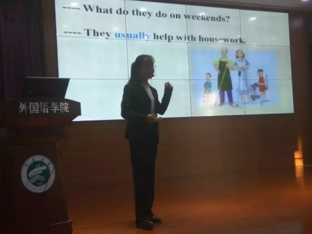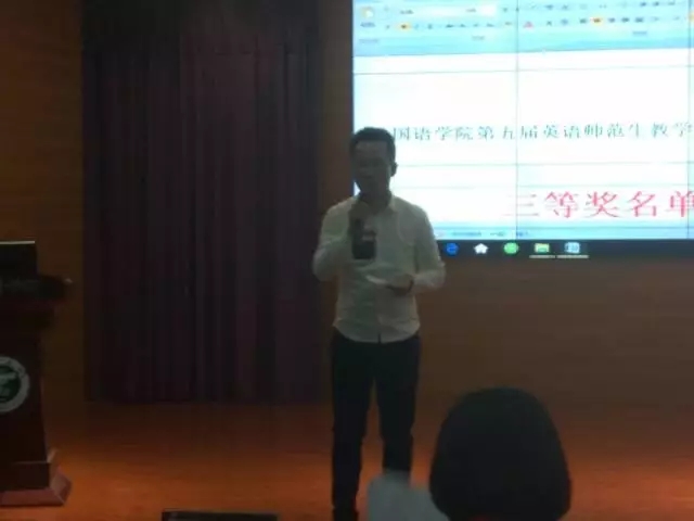 在主持人宣布开始以后,选手们依次上台。他们仪态端庄,讲课思路清晰,板书条理分明,利用多媒体的技术纯熟。选手们或采用对比式教学,或采用互动式教学,或采用问题引导式教学,教学内容详略得当,讲练结合,将比赛现场变成活跃的课堂,为现场的评委和师生们带来了一场教学的盛宴。