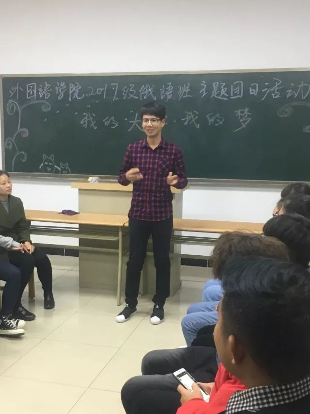 班会伊始,同学们依次上台,同大家分享了入学以来的经历以及对未来的规划和设想。有的同学参加了多个学校社团,有的同学积极参加了院校多项集体活动,有的同学正在攻克俄语学习中的一个个困难,有的同学想出国留学,还有的同学在摩拳擦掌,下定决心四年之后要考取研究生……一段段质朴的发言透露出大家“天天向上”的美好梦想。接着,马雅琼老师就大学生活规划以及大家共同感兴趣的一些问题给出了自己的建议。马老师提到,大学里有很多提升自我的机会和机遇,但是每个机会都是留给有准备之人。所以同学必须在各方面做好充足准备,掌握好学科知识和专业技能,随时迎接机会的到来。
