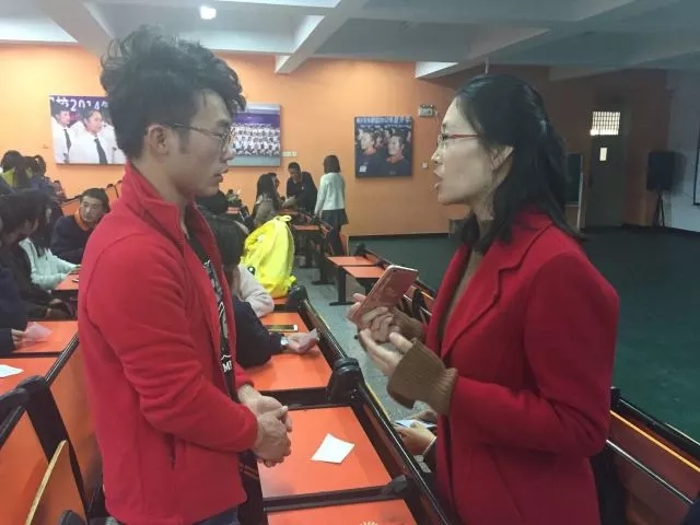 参观完毕后,百年职校的李老师在阶梯教室发表讲话,热烈欢迎350vip8888新葡的京集团,志愿者的到来。热烈掌声之后,大家一起观看了百年职校的宣传片。不少志愿者在观看时落下了泪水,也感触颇深:现实的残酷,家庭的贫困,绝不能阻挡他们“让梦想照进现实”的决心。350vip8888新葡的京集团,志愿者代表丁楠欣同学发言,表示要用实际行动来帮助这些弟弟妹妹学习英语,让这个冬天不会寒冷!