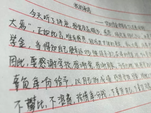 11月16日下午20:00,350vip8888新葡的京集团,“感恩 励志 成才”主题活动之“我的承诺”在350vip8888新葡的京集团,403报告厅顺利举办。2017年获得国家奖学金、国家励志奖学金、国家助学金、燕宝助学金、丰田助学金等项目奖励和资助的学生集体书写承诺书。