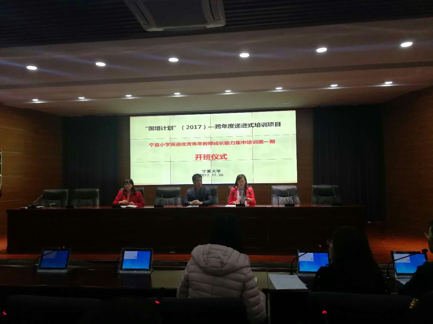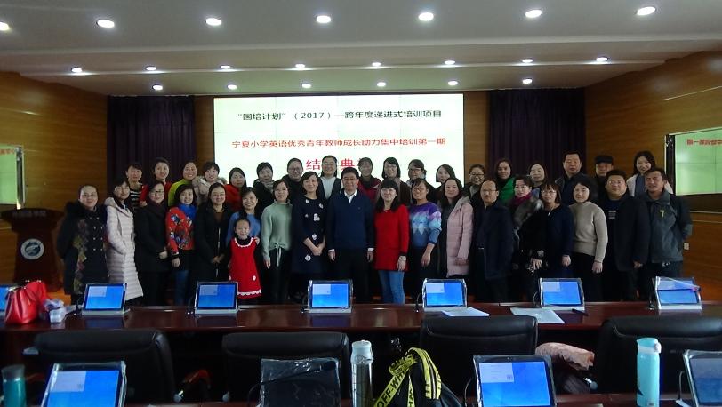 2017年12月3日早上, “国培计划”(2017年度)—宁夏小学英语优秀青年教师成长助力研修结业仪式在350vip8888新葡的京集团,403多功能厅举行,标志着本年度第一期培训工作的圆满结束。