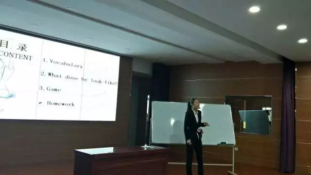 从"Hello everyone"到"Class is over",层层递进,一环扣一环的课堂流程,吸引着同学们的注意,得到评委的佳评。在课堂互动中,参赛同学设置了与课文内容有关的问题提问,现场的气氛因此变得活跃了起来。