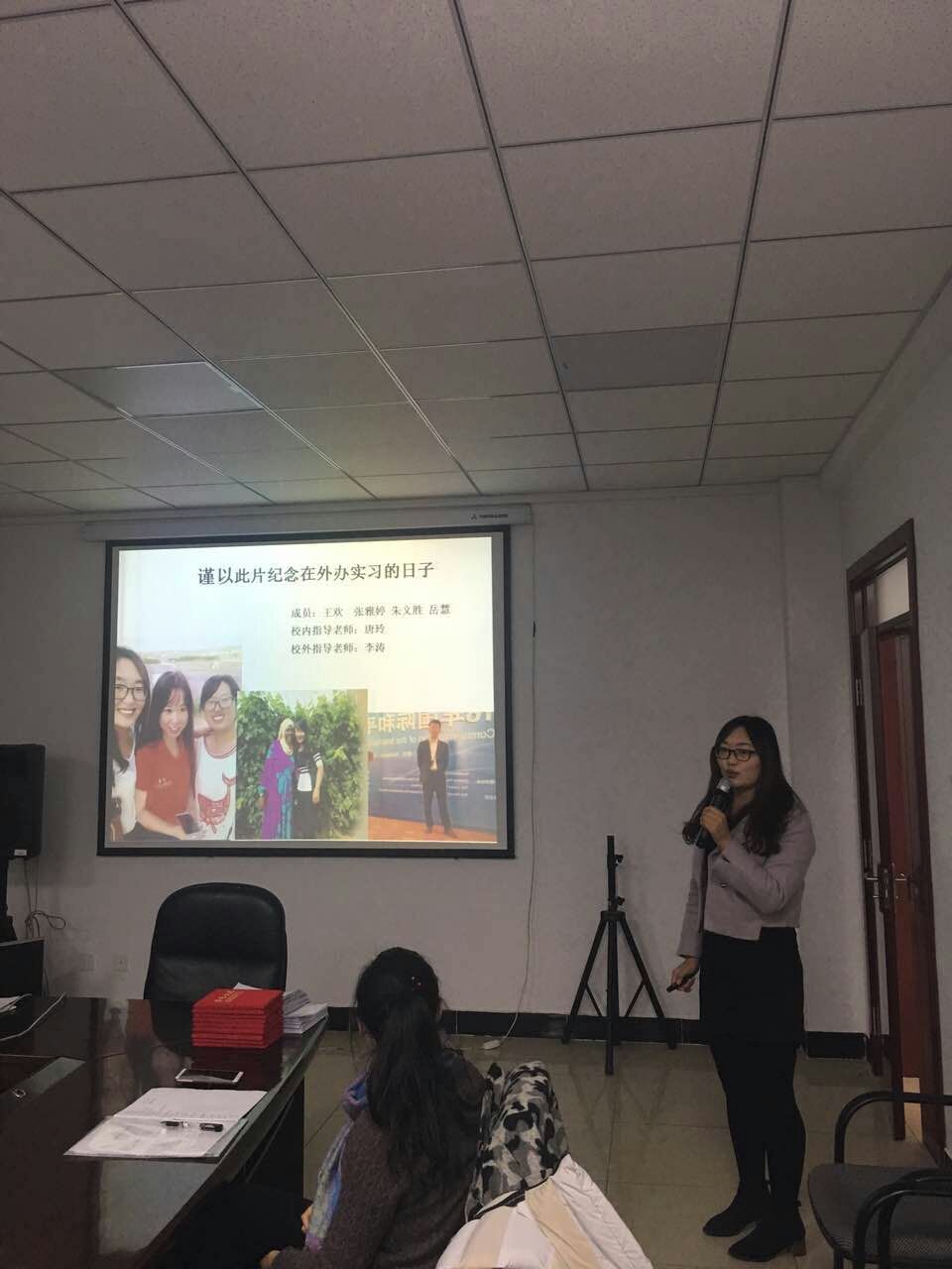 在第三环节,对外合作交流处实习指导教师马小玲副处长高度评价外院选派的实习生,并希望外院能继续培养踏实认真、专业素质过硬的专业学位研究生,还表示愿为更多学生提供成长与进步的机会。随后,校内指导教师张静老师对研究生在宁夏国际语言学校实习情况进行汇报和反馈。