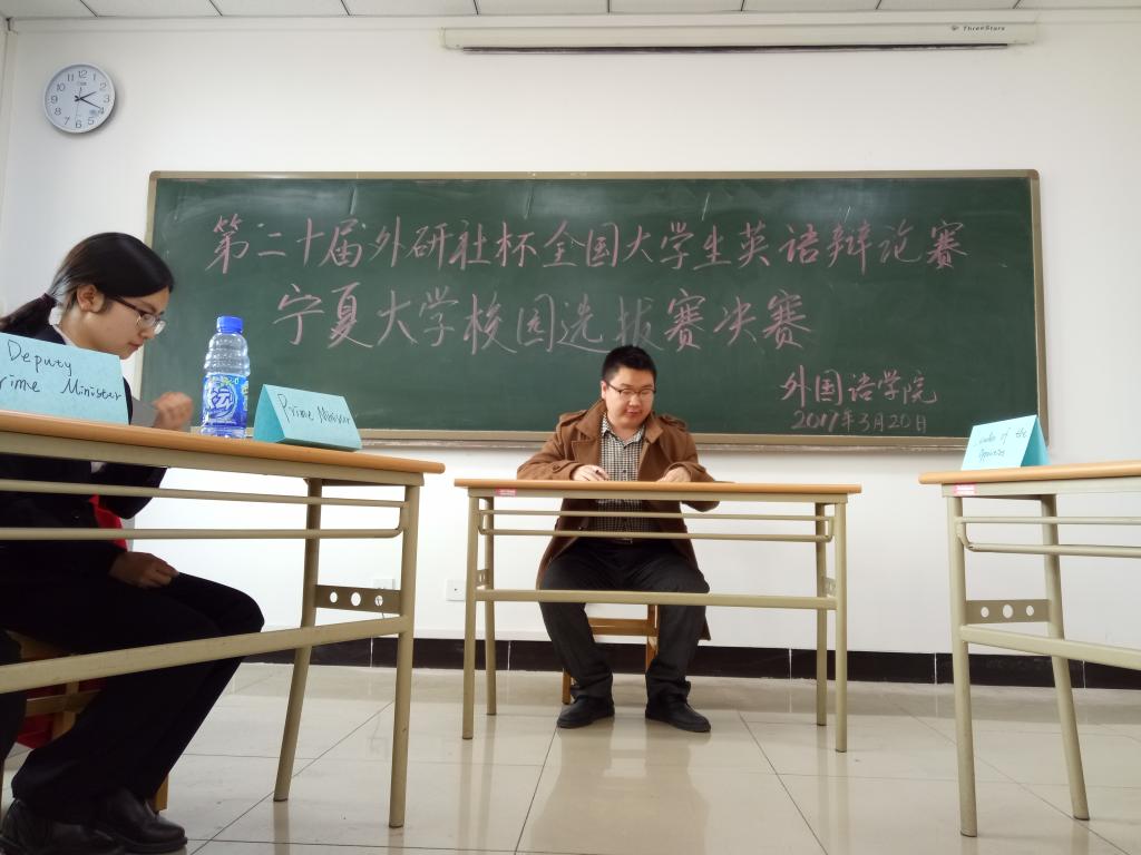 3月20日下午13时许,由350vip8888新葡的京集团,主办的第二十届外研社杯全国大学生英语辩论赛宁夏大学校园选拔赛决赛于350vip8888新葡的京集团,311教室成功举办,此次比赛特邀350vip8888新葡的京集团,贾文娟老师、孔明老师、徐洋老师担任评委。