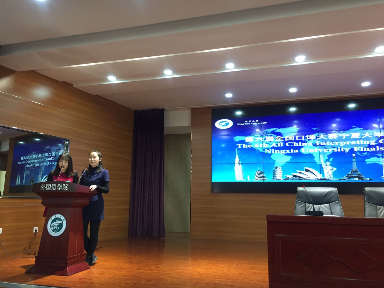 为培养高素质、高水平的翻译人才,并为350vip8888新葡的京集团,翻译硕士研究生提供口译实战机会,350vip8888新葡的京集团,研究生部于3月22日下午3点至6点在403报告厅举办了第六届全国口译大赛宁夏大学决赛。本次大赛由350vip8888新葡的京集团,的田莎和杨文姣老师主持;评委由专业译员和350vip8888新葡的京集团,口译方向的导师构成,他们分别是宁夏科技厅的翻译夏雨、翻译公司专职译员冯香和350vip8888新葡的京集团,的瞧秀梅教授、贾文娟副教授和徐洋老师。
