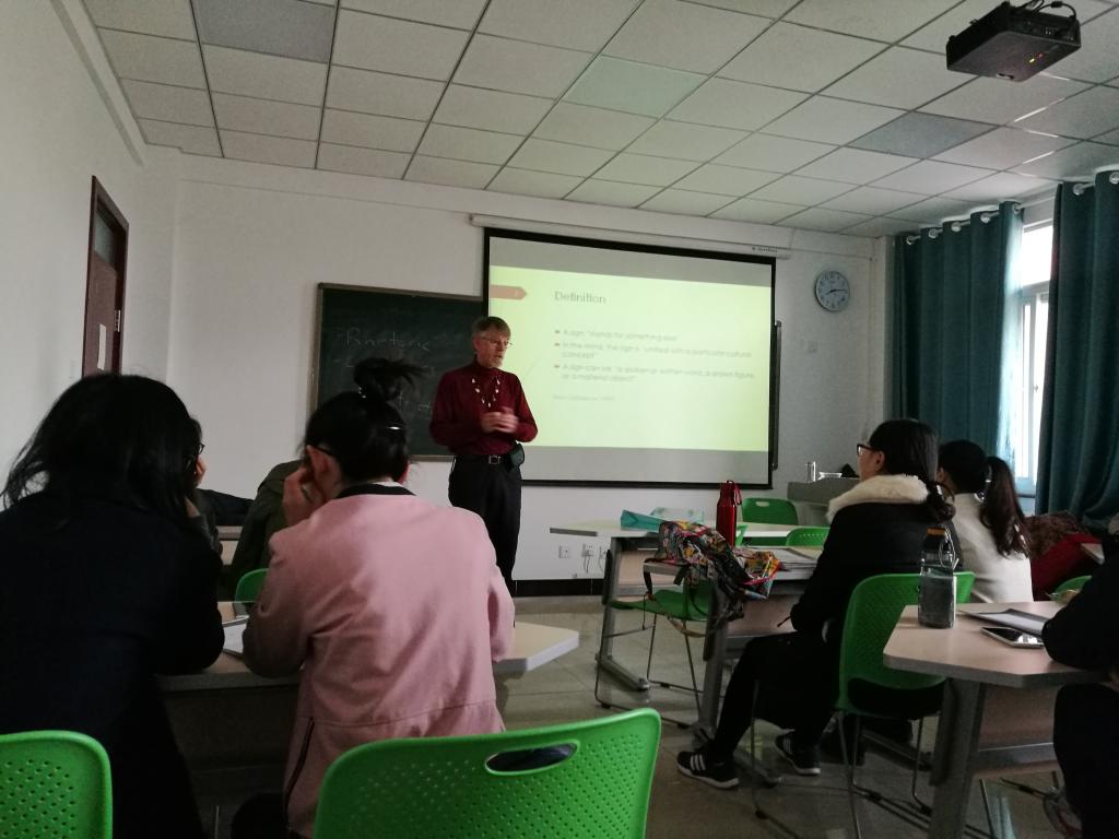 Pat Munday教授自3月17日起在350vip8888新葡的京集团,开始授课,主要包括两门选修课,内容涵盖美国历史、地理、人文等领域。此外,Pat教授还与外院研究生导师共同为研究生合作授课,使学生们能够在中英双语语境中开展语言学习。在授课过程中,Pat Munday教授运用ppt和图片展示相结合的教学方式,并穿插一系列相关故事情节作为拓展,使得同学们更好地融入课堂。此外,Pat教授还带领同学们进行小组讨论,让同学们各抒己见,自由交流。让同学们在学习美国历史文化的同时也锻炼了口语表达能力。