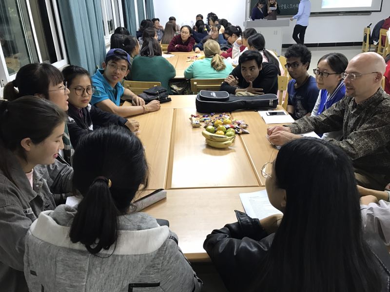 18:00在350vip8888新葡的京集团,213教室举办了以“My College Life”为主题的英语角活动。本次英语角活动邀请到了350vip8888新葡的京集团,外教,他们是Dale,Sarah Bet, Bob and Karen Cheah前来指导,公外部教师和UTALK协会学生协助,来自各个学院的80余名学生参加了此次活动。