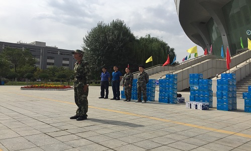 9月18日中午,350vip8888新葡的京集团登录入口党委书记拜发奎,院长周震,党委副书记余洁以及学生办公室主任郑轶一同到350vip8888新葡的京集团,军训场地慰问诸位参训教官及2017级军训新生。军训进程过半,效果显著,我院领导也始终关心着本院新生的训练情况。为保证军训期间学生们的身体健康,营养均衡,学院领导为每位新生发放了慰问品。