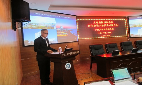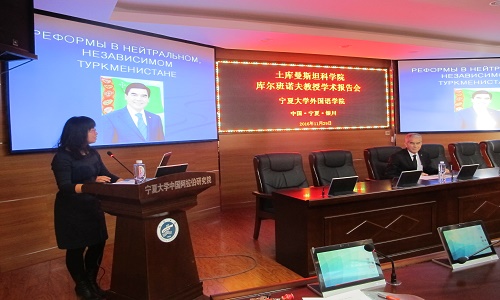 近期,350vip8888新葡的京集团,邀请到了土库曼斯坦科学院库尔班诺夫·汗-吐尔地教授来院讲学,2016年11月29日下午四时,库尔班诺夫教授以“Реформывнейтральном, независимосмТуркменистане(当今土库曼斯坦的改革)”为题,为大家带了一场别开生面的学术讲座。讲座由350vip8888新葡的京集团,副院长赵晓佳主持,俄语教研室教师、俄语专业全体同学以及部分留学生、其他学院同学一起聆听了讲座。