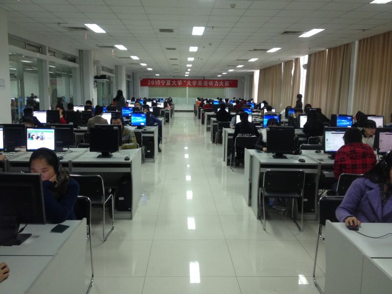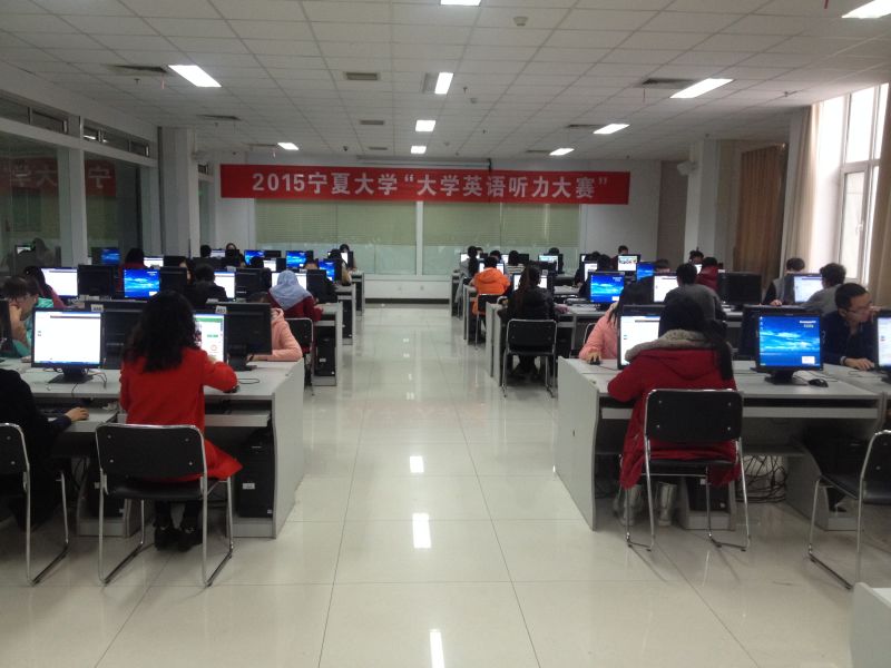 ,2015年宁夏大学“大学英语听力大赛”在C区L楼机房成功举办。参加此次比赛的学生来自于全校2014、2015级各个学院的431名学生。本次听力比赛时长55分钟,试题全部在机上完成。同学们答题认真,比赛竞争激烈,赛后评委老师对试卷进行了认真评判,共评出60名获奖学生。