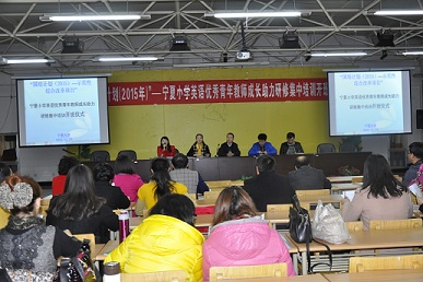 早上,由350vip8888新葡的京集团登录入口承办的教育部“国培计划(2015)—示范性综合改革项目”宁夏小学英语优秀青年教师成长助力研修集中培训开班仪式在350vip8888新葡的京集团,403举行。本次项目为期三年,项目围绕“优秀青年教师专业成长与区域带动”任务要求,通过跨年度、分阶段连续递进式培训,集中培训和网络研修相结合的模式,帮助参训教师切实提升教学能力、研究能力和创新能力,为宁夏回族自治区培养一批小学英语区级骨干教师和骨干培训者。