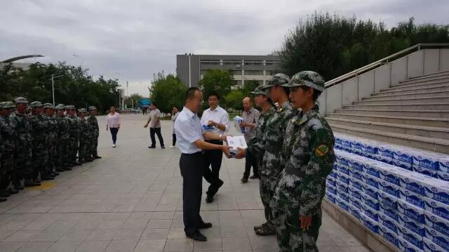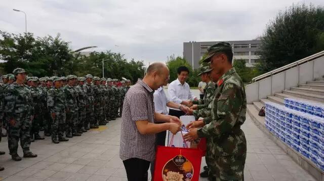 军训进程过半,效果显著,我院领导也始终关心着本院新生的训练情况。为保证军训期间学生们的身体健康,营养均衡,学院领导为每位新生发放了慰问品。