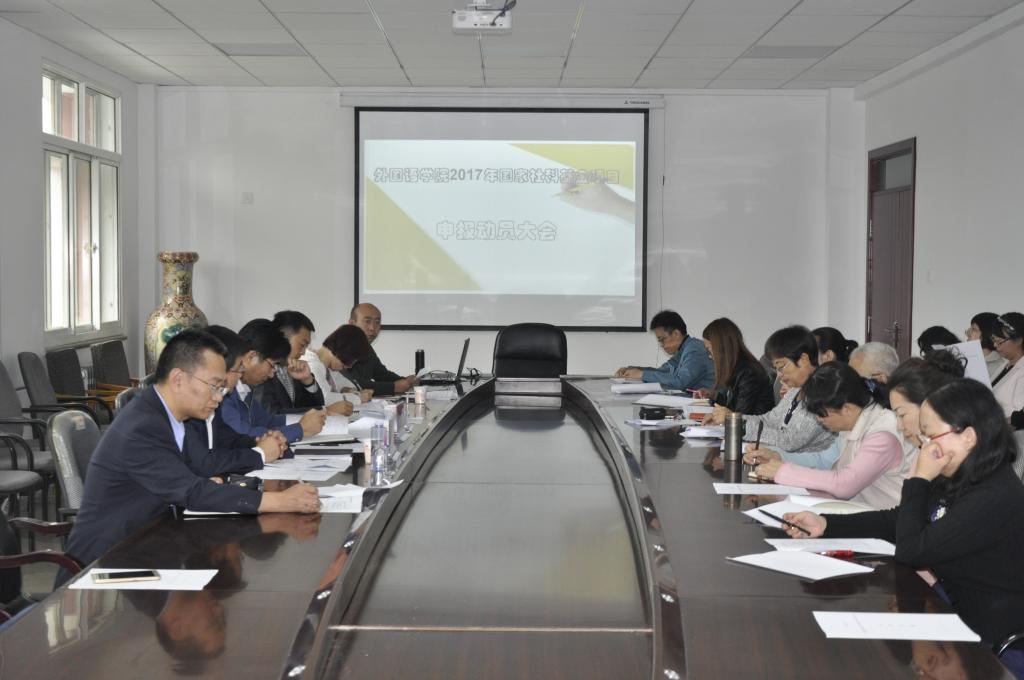 动员大会由350vip8888新葡的京集团,院长 周震 教授主持。李文军副院长首先 向与会 老师与领导介绍了350vip8888新葡的京集团,近年科研发展状况,重点介绍了学院科研项目申报情况,并向大家宣读了“350vip8888新葡的京集团,2017年国家社科基金项目申报工作方案。”