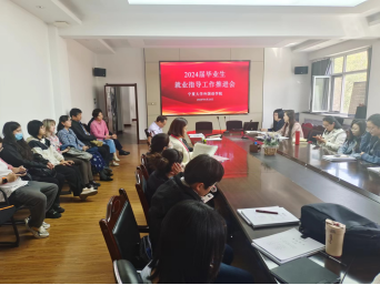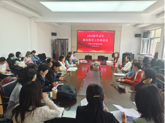 4月23日下午,我院2024届毕业生就业指导工作推进会在逸夫楼二楼会议室召开。参加会议的人员有学院党总支书记朱海燕、副书记胡笑瑛、副院长金忠杰、学院工作组核心成员、各毕业班班主任及精准指导教师。