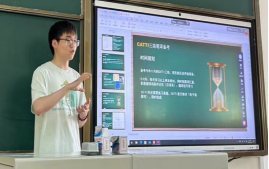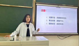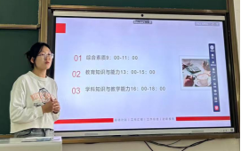 2023级翻译硕士口译方向研究生马红瑞为大家分享了专八和教资的备考经验。马红瑞向同学们强调了专业八级考试的重要性,她鼓励同学们树立积极的学习态度,做到早规划、早准备。同时,她也举例讲解了教资面试过程中的课堂导入环节,建议同学们面试前一定要与其他备考同学共同训练模拟,以增强临场发挥和应变能力。