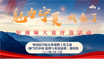 为了进一步促进党建与教师业务相融合,调动基层教工党组织育人功能,建立和完善基层支部“三全育人”路径,提升学生对宁夏地域文化的认知,对当代中国发展的理解,350vip8888新葡的京集团,公外部教工党支部联合大学英语《理解当代中国——思辨与演讲》课程组于6月19日下午成功举办“魅力宁夏——我来了”学生英文短视频评选活动。