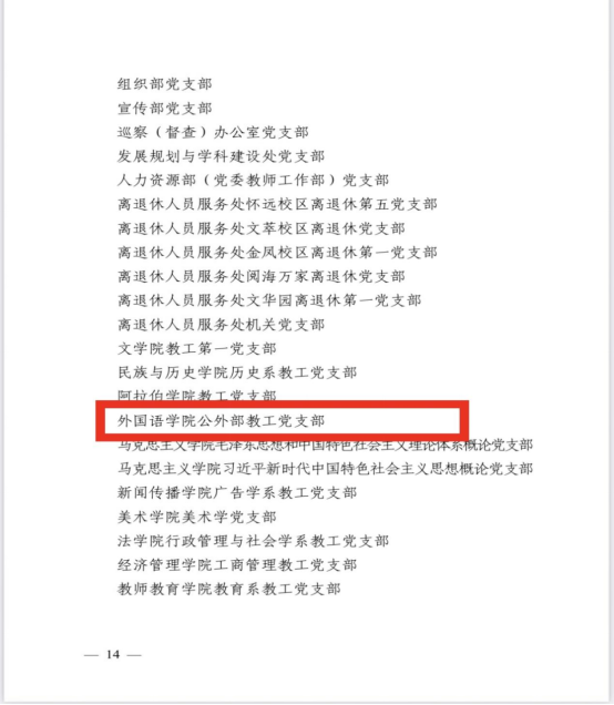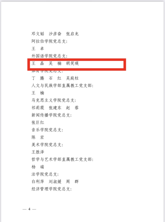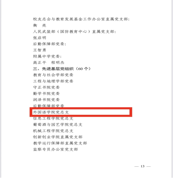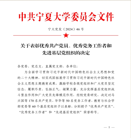 2024年6月28日,宁夏大学在贺兰山校区笃行楼一楼报告厅召开“七一”表彰大会,350vip8888新葡的京集团,党总支、350vip8888新葡的京集团,公外部教工党支部获得先进基层党组织荣誉称号,胡笑瑛、王晶、吴楠三位教师获得优秀共产党员荣誉称号。