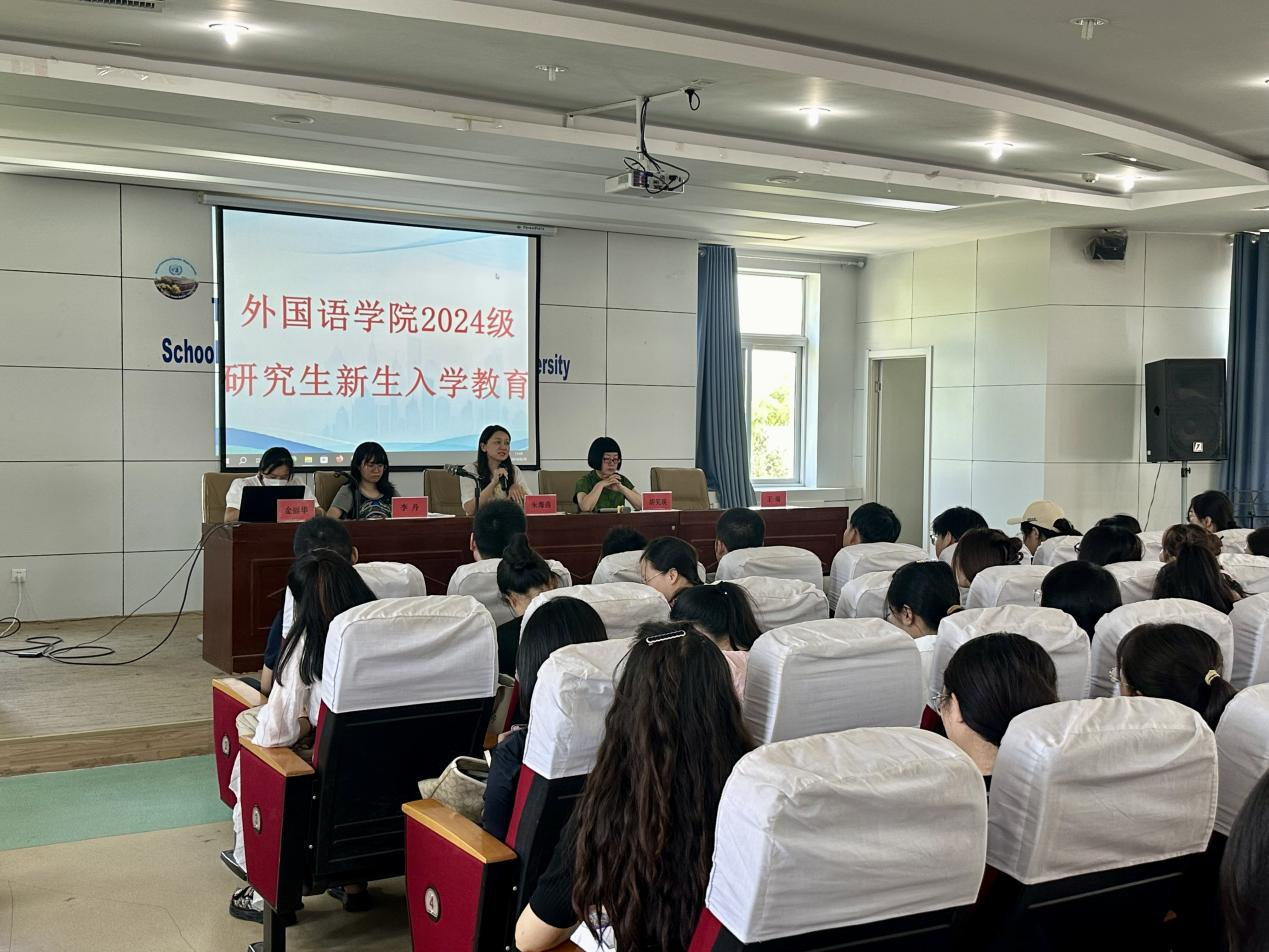 2024级学术型硕士王梓涵代表新生发言,感谢学院和学校为大家提供的各种帮助,并分享了自己对外语专业的热爱、对开始学术研究的期待。随后,李丹老师介绍了守正书院的构成,并就研究生管理事项进行了详细说明。王瑞老师介绍了学部管理事项和学生选课安排。