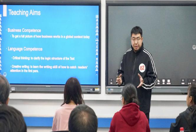 本次比赛设置了英语专业组和商务英语组两个组别,每组均有复赛和决赛两轮比赛。复赛要求参赛教师讲述一堂20分钟的模拟课,教师需要在陈述整体教学设计后,针对某一具体板块进行教学展示。决赛要求在30分钟内完成教学准备,紧扣组委会指定的内容材料进行7—10分钟的说课,并在说课结束后接受评委提问。