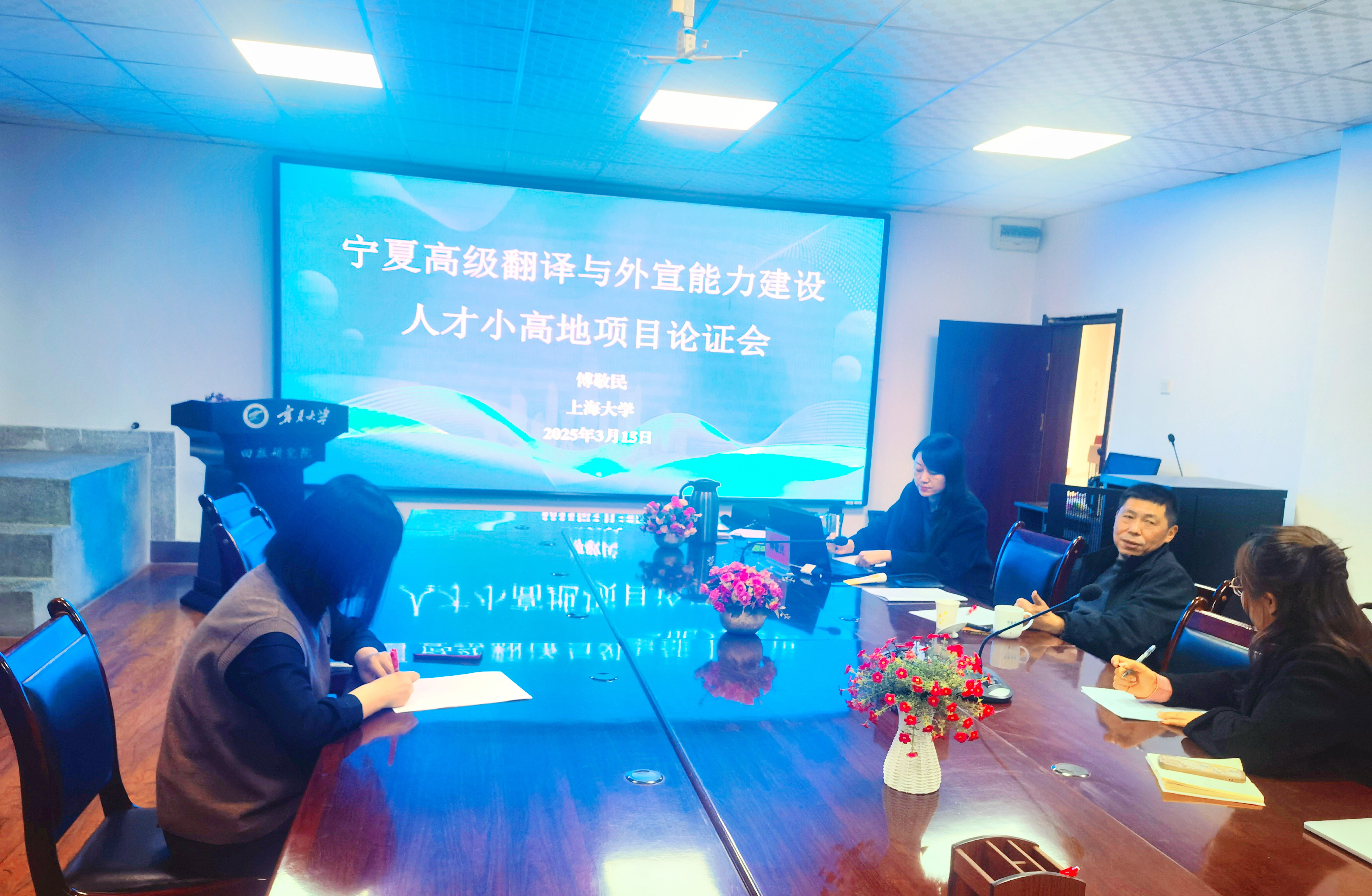 3月15日上午,350vip8888新葡的京集团,召开“宁夏高级翻译与外宣能力建设人才小高地项目论证会”,特邀国内应用翻译研究领域知名专家傅敬民教授现场指导。团队相关教师参加了论证会。论证会由人才小高地负责人朱海燕主持。