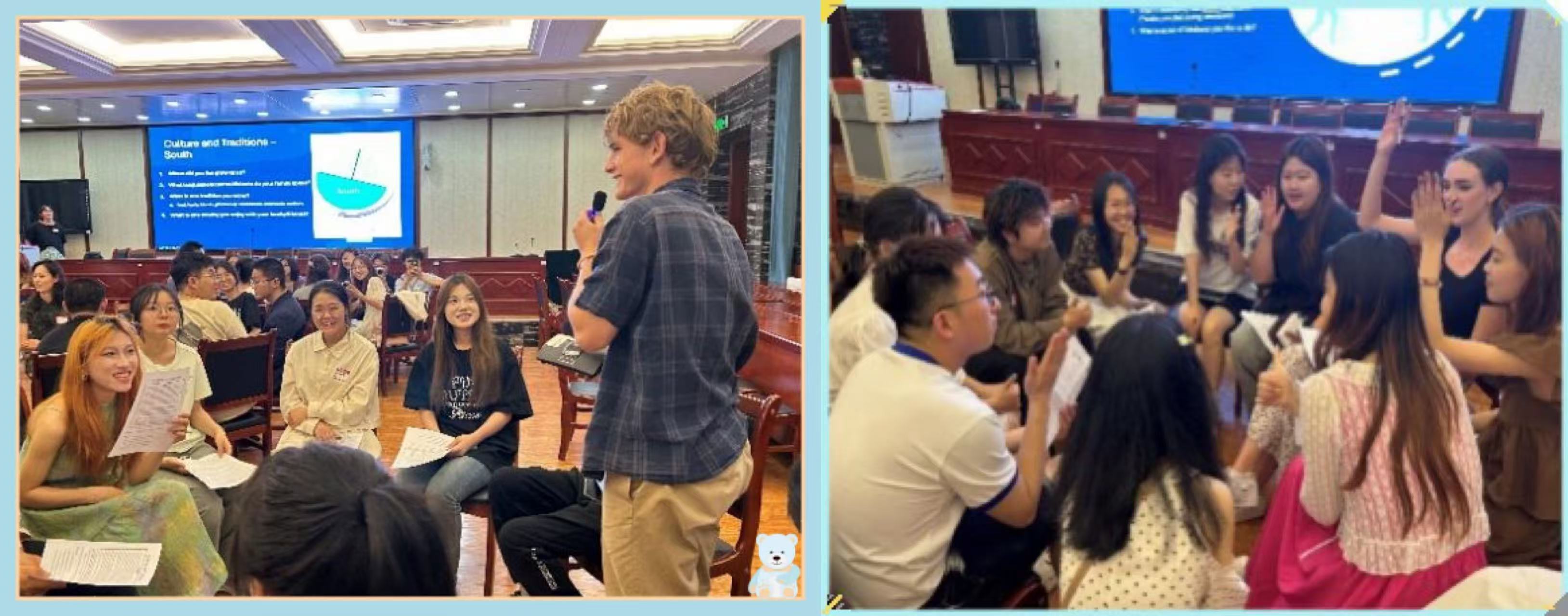活动一开始,参与者通过彩色姓名贴相互认识,开启交流之旅。在“Fact or Fiction”互动环节中,大家分享探讨不同国家的文化与习俗,在轻松的氛围中增进了了解。进入自由讨论阶段,同学们与国际友人围坐交交流,分享个人兴趣、家乡风貌、对学校和专业的认识、感受与思考,对职业与人生的规划与忧虑等。话题由浅入深,交流逐渐深入,围绕增强互动,活动设置了轮换交流环节。参与者自由切换小组,结识新伙伴,展开更广泛的对话。不同文化背景的观点交织碰撞,为英语角增添了丰富色彩。毋庸置疑,真正的语言能力不仅在于词汇语法,更在于理解不同文化背景下的思维与表达方式。英语角活动不仅锻炼了学生的英语表达能力,更搭建了跨文化沟通的桥梁。通过面对面的交流,参与者拓展了国际视野,深化了对多元文化的理解。