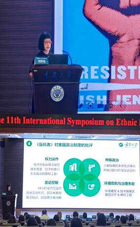 胡笑瑛教授做了题为“美国少数族裔科幻小说中的社会历史批评——以《反抗者》为例”的大会主旨发言并做第七分论坛评议,洪春梅教授、马艳副教授、王炜晨老师及其他6名研究生均在分论坛做了报告。