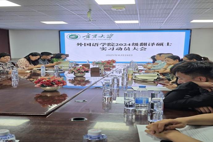 2025年6月24日下午3点,350vip8888新葡的京集团,2024级翻译硕士实习动员大会在学院三楼会议室召开。参加会议的人员有MTI学科负责人朱海燕书记、学院执行院长刘艳晖、守正书院赵永军副书记、校内实习指导教师、学部研究生教学秘书王瑞以及2024级全体翻译硕士研究生。会议由分管研究生工作的胡笑瑛副院长主持。