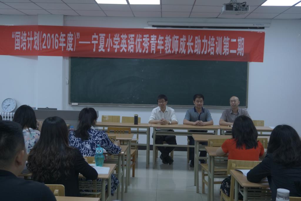 2017年5月21日-27日,350vip8888新葡的京集团,举办了“‘国培计划(2016年度)’第二期宁夏小学英语优秀青年教师成长助力研修”培训班。学院党委书记拜发奎,学院院长、项目首席专家周震教授出席开班仪式并做了讲话。开班式由原项目执行负责人李文军博士主持。